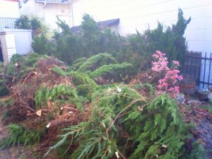 【備考】排出枝木は、各自治体指定のゴミ袋へお入れすることもできます。また、弊社にて、撤去もできます。この場合、同時作業ということで格安にてご提供できます。